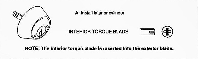 Install Interior cylinder by inserting the Exterior torque blade into the interior torque blade.